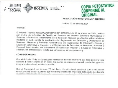 En el marco del parágrafo II del artículo 2 del Decreto Supremo N° 25714 de 23 de marzo de 2000, la Unidad de Gestión de Personal del SEP y Sistemas Informáticos del Ministerio de Educación, mensualmente entrega las planillas de haberes del personal docente y administrativo del SEP a la Caja Nacional de Salud (CNS) a objeto de evitar posibles multas, a la cual se debe adjuntar fotocopia del Form. AVC-07 ‘Aviso de Baja del Asegurado’’, por lo que la Dirección Departamental de Educación mediante la instancia correspondiente debe remitir hasta el día 10 de cada mes a esta Cartera de Estado, copia del indicado formulario para su envío respectivo. Asimismo, se recuerda que las planillas adicionales, retroactivos o reintegros deben ser remitidas al Ente Gestor de Salud - CNS por cada Dirección